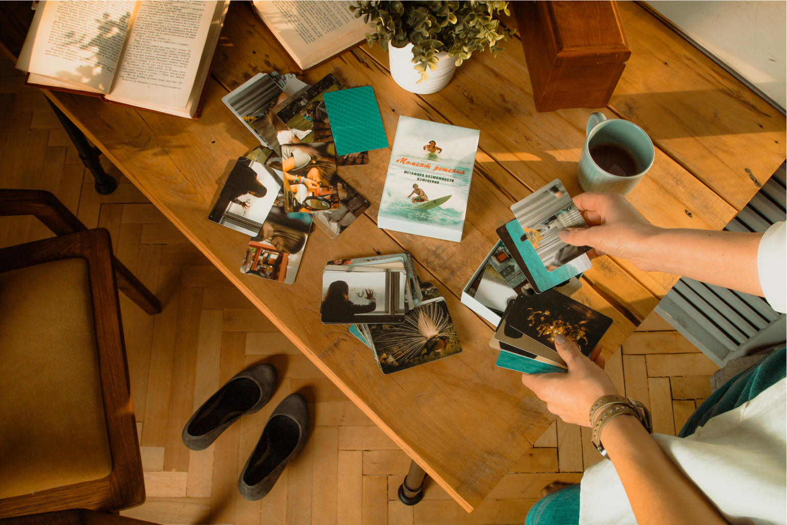 Мы назвали колоду «Момент решения», потому что решение - это тот самый момент, когда начинаются изменения. И хотя круг тем, с которыми можно работать этими картами, бессовестно широк, все-таки задумывали колоду мы для работы с принятием решений и формированием изменений в жизни.